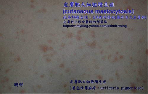 此病性質與「皮膚肥大細胞增生症」相差甚多,將再另行撰文討論。